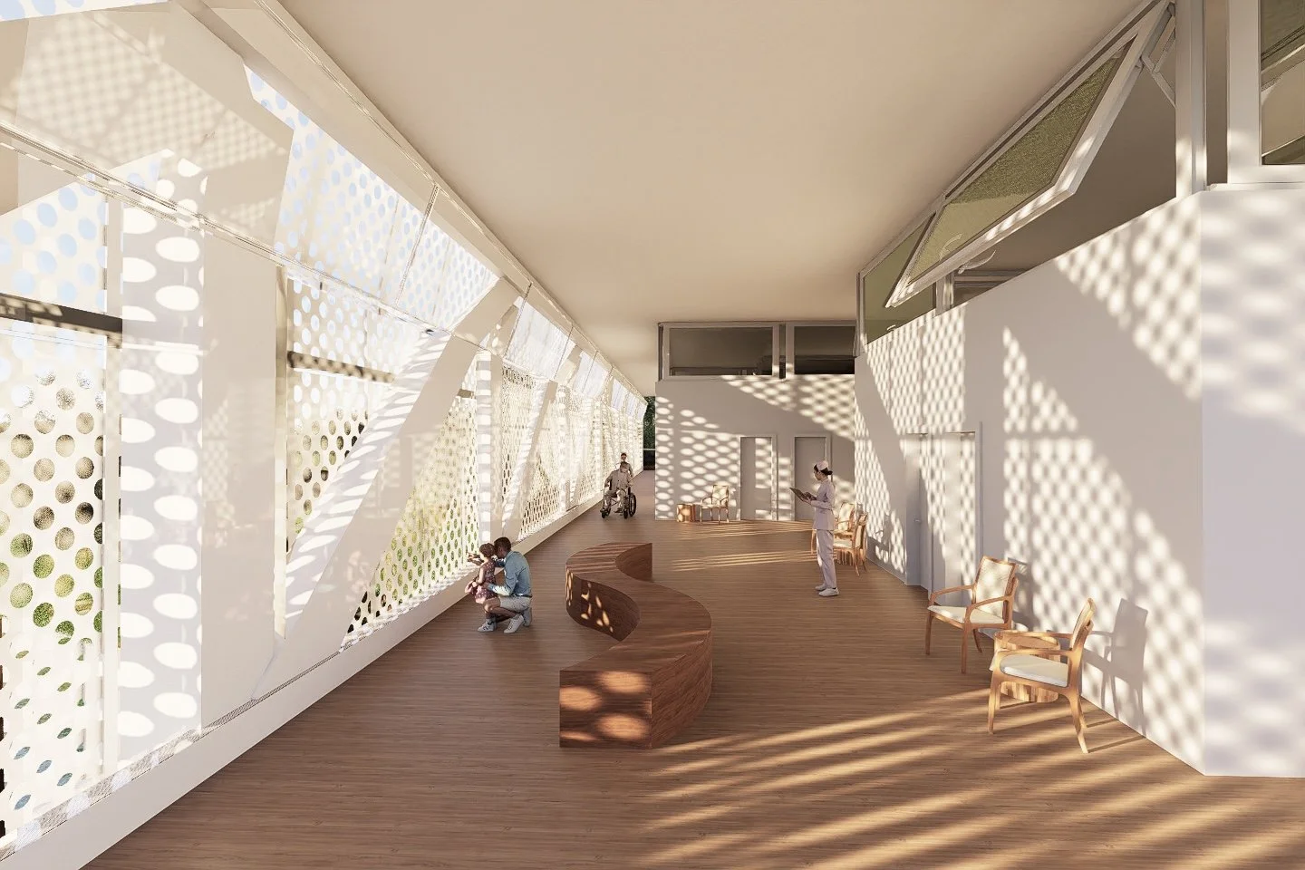 This project aims to humanize psychological treatment by combining warmth, accessibility, and efficiency for all ages. The design includes functional access, dedicated spaces for care and staff, and connects two main blocks with gardens and a reflecting pool for comfort. Surrounded by rich vegetation and new public spaces, the project benefits both the community and its users, promoting a welcoming and healing environment.