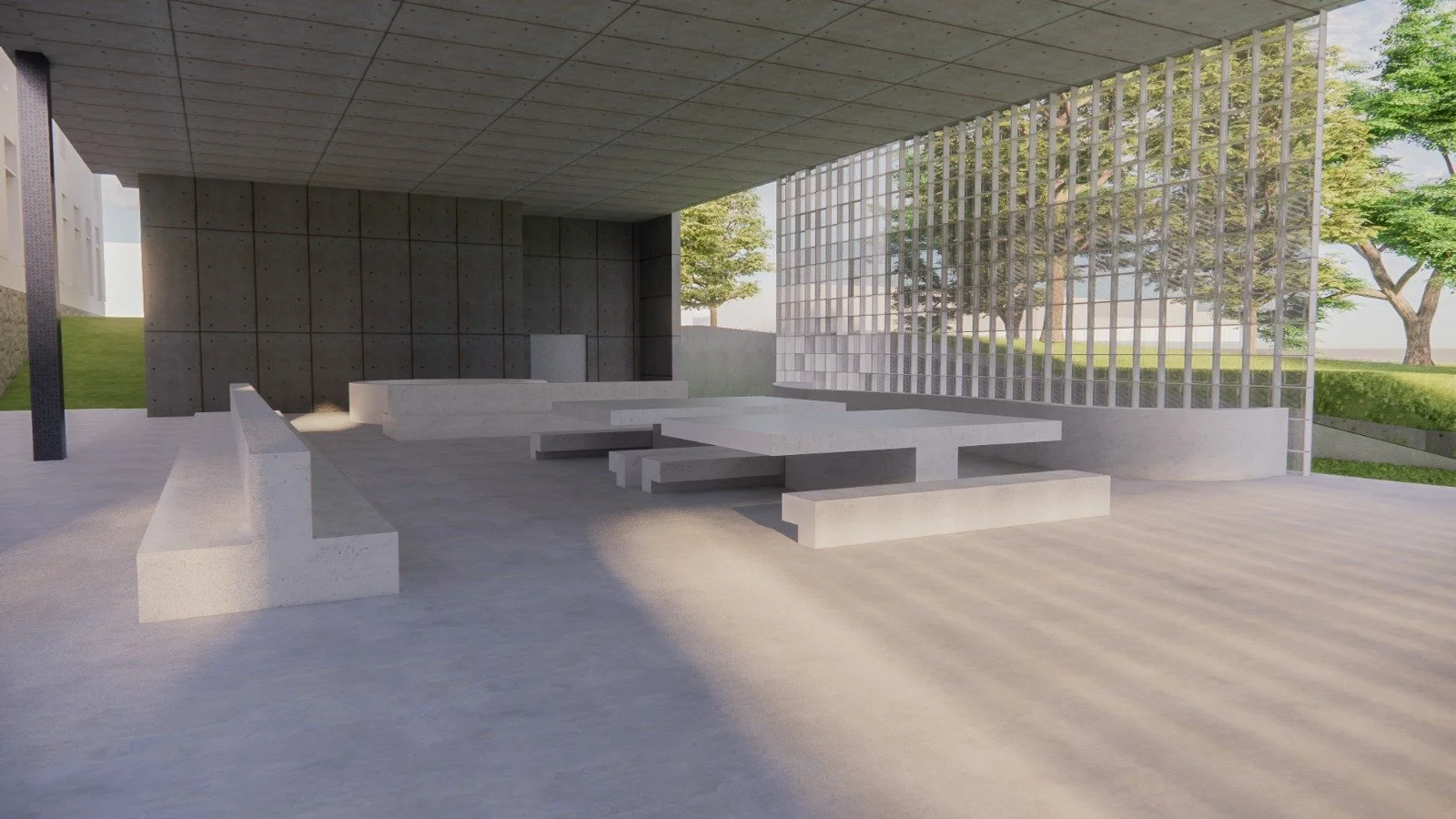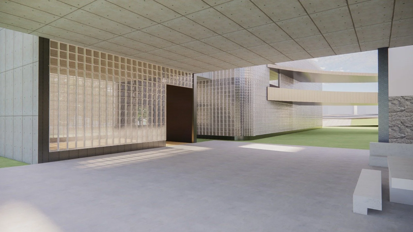 The project improves visitor flow and creates a seamless connection with the adjacent park, featuring new accessible entrances and exits. Social areas maximize natural light, while discreet service access ensures operational efficiency. Native landscaping, open areas, and a direct connection to the park foster integration with nature. The annex respects existing building levels and remains lower than the historic museum, preserving its prominence. Strategic stairs and walkways ensure accessibility, and sustainable materials—glass blocks, metal, and controlled concrete—reduce environmental impact while enhancing energy efficiency.